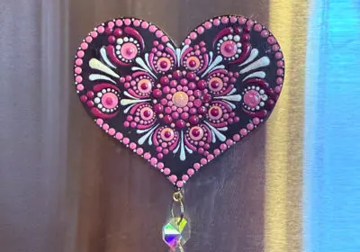 Just in time for Valentine’s Day, artist Debbie Sizemore, of Dot & Dusty, is offering a hands-on mandala dotting workshop to create a magnetic heart that will last much longer than a box of chocolates. You’ll decorate a heart-shaped wooden magnet in classic shades of pink, burgundy and white or your choice of other colors, on a dark background. Finally, you’ll finish it off with a dangling faceted crystal prism that captures and scatters rainbow light.